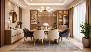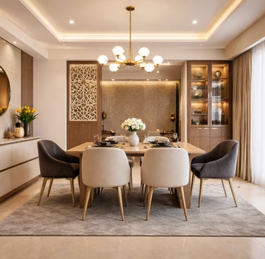 Thoughtfully designed dining spaces that combine comfort, smart space planning, and refined aesthetics for memorable gatherings.